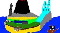 I created a simple concept art of the island. You can spot a few places from Breast Quest such as the tower...